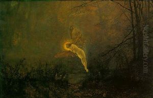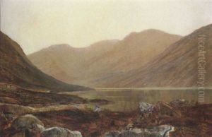 A Shepherd With His Flock In A Mountainous Lake Landscape