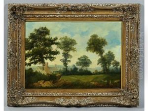 A Wooded Landscape With A Thatched Hut And A Figure On A Path In The Foreground