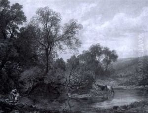 Boys Fishing By A Stream, A Ruined Church Beyond