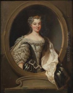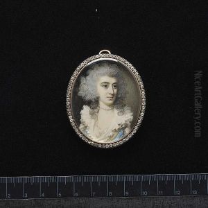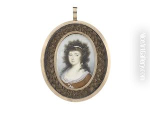 A Lady, Wearing Blue Dress With White Fichu, Her Hair Powdered And Upswept Beneath A Blue Bandeau Bearing Inscription King And Constitution