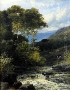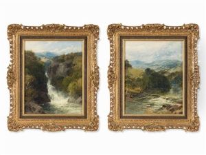 Figures On A Path By A Lake (+ A Wooded Stream; Pair)