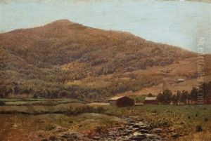 Wooded New England Landscape With Stream At Foreground And Mountain Beyond
