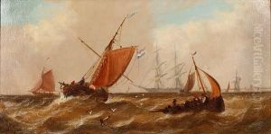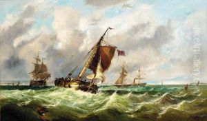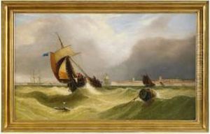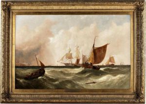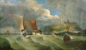 Racing Schooners Anchored Inshore And Riding Out The Gale Off Theirish Coast, Possibly Co. Down