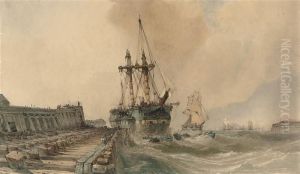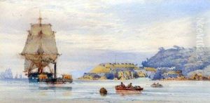 A Steam Tug Towing A Man O' War Off The Portsmouth Coastline