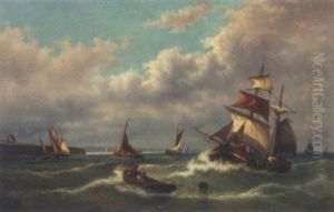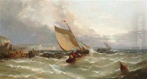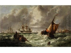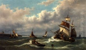 High Tide Off Boulogne: A French Barge Caught In A Swell Off The Harbour Mouth