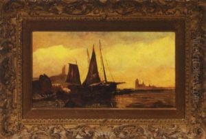 A Fishing Cutter, A Barque; Approaching The Quay; Fishing Boats At Sunset