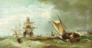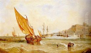 A Paddle Tug Towing A Brig Into The Harbour At Scarborough Amidst Other Shipping