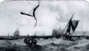 Fisher Folk With Sailing Ships On The South Coast