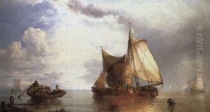 Evening Shipping Coming Into Anchor Off The French Coast