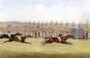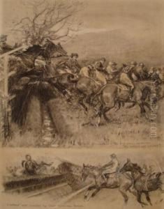 Steeple Chase Passing Through A Village Near The Horse And Jockeyinn