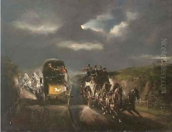 Bring the timeless beauty of John Charles Maggs's The London to York stage coaches into your home with a handmade oil painting reproduction. Carefully recreated on canvas by skilled artists using traditional techniques, this piece captures the delicate brushwork, subtle light, and vibrant color of the original masterpiece. With museum-level quality and rich texture, it brings elegance and artistic depth to any space. Enjoy free shipping and make this masterpiece a part of your personal collection.