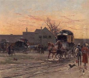 The Oxford To London Coach Outside An Inn In Winter