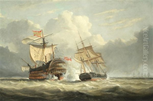 Bring the timeless beauty of John Christian Schetky's Captain Richard Bowen's 38-gun Frigate Terpsichore Engaging The Mighty 136-gun Spanish 4-decker Santissima Trinidad On 1st March 1797, Two Weeks After The Battle Of Cape St. Vincent into your home with a handmade oil painting reproduction. Carefully recreated on canvas by skilled artists using traditional techniques, this piece captures the delicate brushwork, subtle light, and vibrant color of the original masterpiece. With museum-level quality and rich texture, it brings elegance and artistic depth to any space. Enjoy free shipping and make this masterpiece a part of your personal collection.