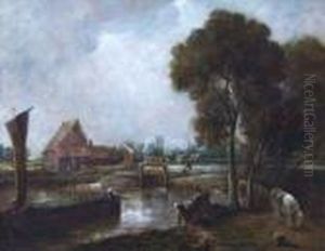 John Charles And Maria Louisa Constable Fishing From A Barge At Flatford Mill I