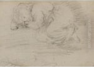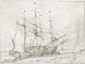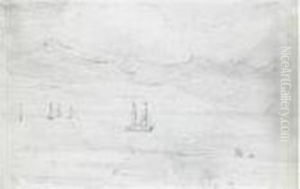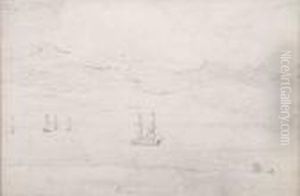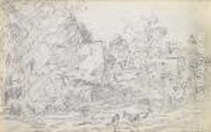 Fishermen In Front Of A Gothic Ruin, Another Ruin On Theright