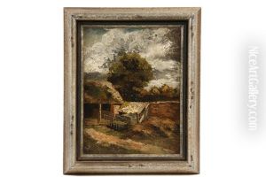 Woman Fetching Water By A Mill, Farm Buildings To Background