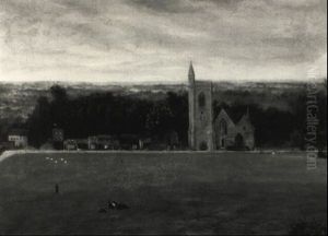 Landscape With Dark Clouds And Distant Tower