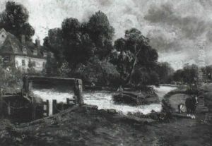 Flatford Lock On The Stour Looking Towards Bridge Cottage