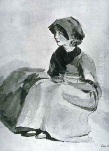 A Labourer Approaching A Thatched Pavilion In A Garden