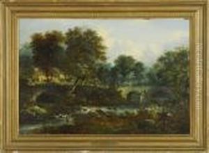 A Wooded River Landscape With A Drover On Horseback And His Cattle On A Track