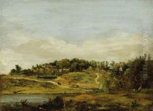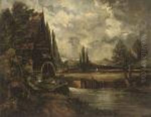 Landscape With A Red-tiled Cottage, A Windmill And A Rainbow