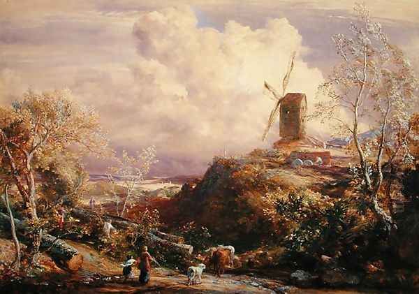 Windmill on a Hill with Cattle Drovers