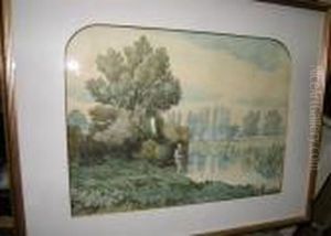 Cattle Watering In A Stream; Watercolour, Bearslabel For Thomas Agnew & Sons, London, Verso, 37x56cm