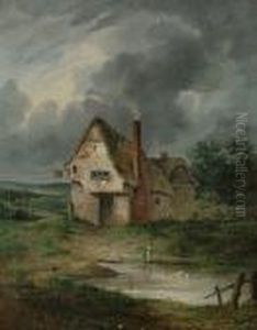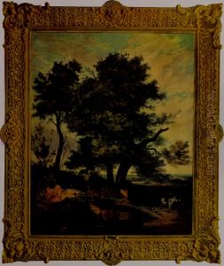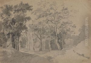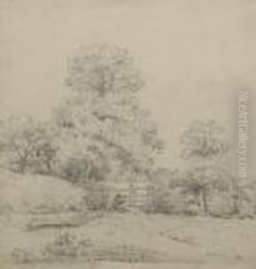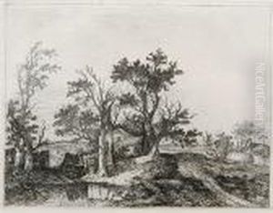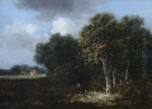 Wooded Landscape With Figures By A Cottage And An Old Oak Tree