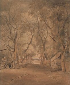 Figures By A Gate With Woodland; Pencil, 27x25cm. Provenance: With The Squire Gallery, London According To Label Attached To The Reverse