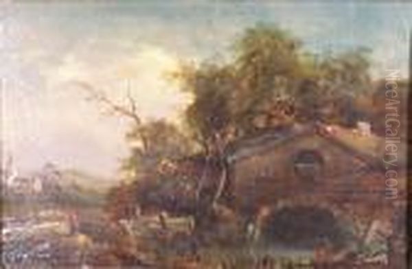 A Watermill In A Wooded Landscape