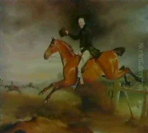 Mr. George Marriott On His Bay Hunter Taking A Fence