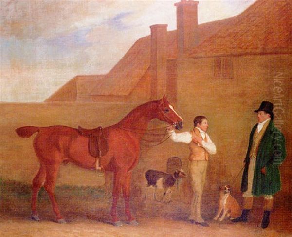 Mr Charlton With His Groom Holding A Chesnut Hunter In A Yard