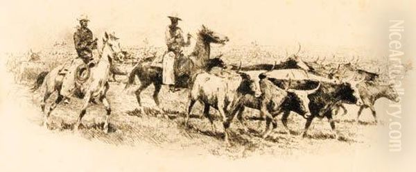 Cattledrive Signed 'edward Borein' (lower Right)
