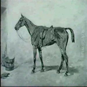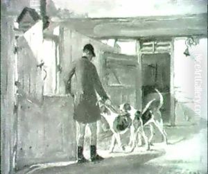 Huntsman In A Stable With Fox Hounds And A Chestnut Hunter
