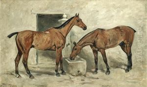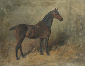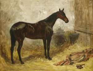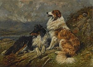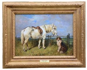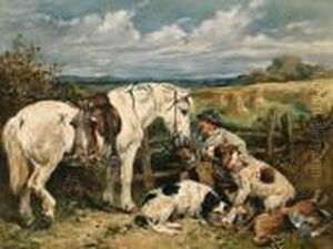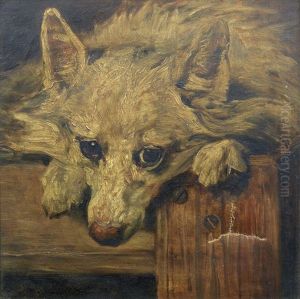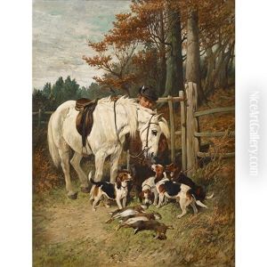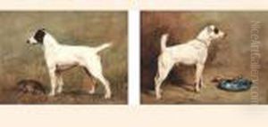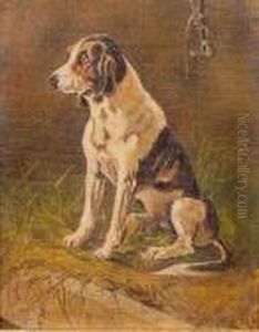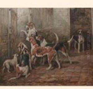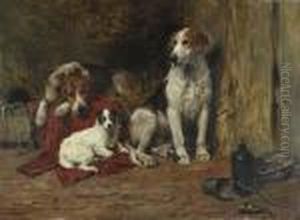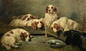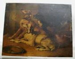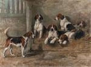Hours Of Idleness; Foxhounds And A Terrier In A Kennel