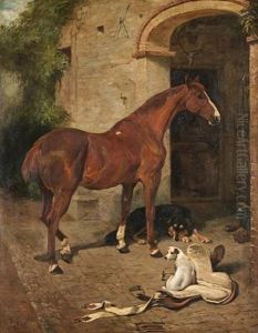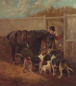 Hounds Waving Their Sterns, With A Lakeland Terrier By A Stable Door