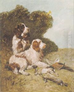 "sailor" And "bramble", A Curly Coated Retriever And An English Pointer In A Landscape