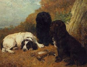 Otter Hounds And A Terrier By A Bridge - Tired Out