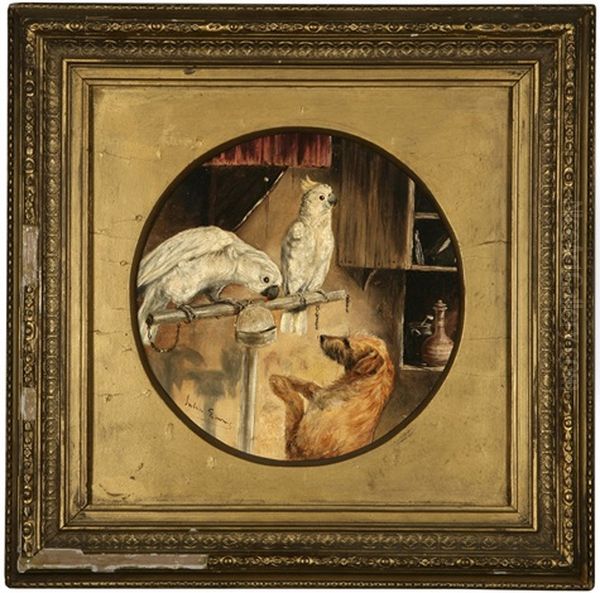 Bring the timeless beauty of John Emms's Sulfur Crested Cockatoos And A Terrier (pair) into your home with a handmade oil painting reproduction. Carefully recreated on canvas by skilled artists using traditional techniques, this piece captures the delicate brushwork, subtle light, and vibrant color of the original masterpiece. With museum-level quality and rich texture, it brings elegance and artistic depth to any space. Enjoy free shipping and make this masterpiece a part of your personal collection.