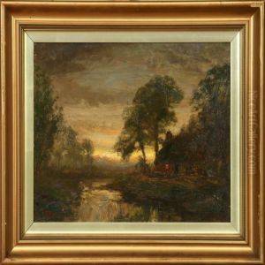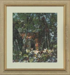 An Impressionistic Study Of Trees And A Cottage At Sunset