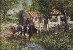 Country Landscape With Cattle By A Stream