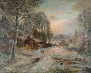 Winter Landscape With A Steadingby A Track