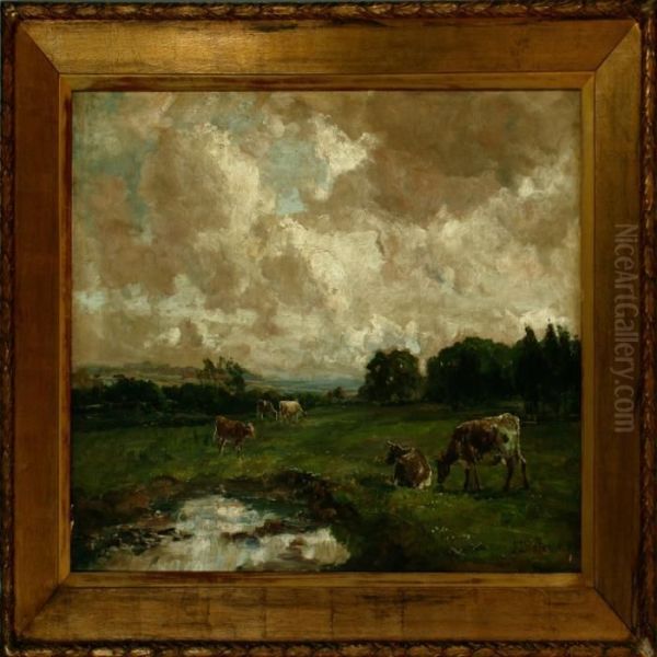 Summer Landscape With Grazing Cattle