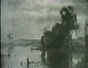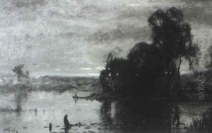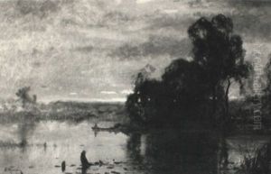 Boater On A Lake, Dusk