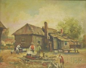 Landscape With Stream & Barns