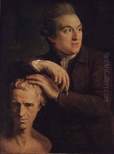 Portrait of Joseph Nollekens 1737-1823 the sculptor with a bust of Laurence Sterne 1713-68
