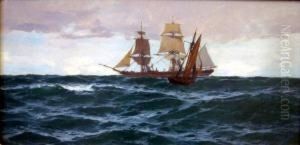'coastal Scene With Fishing Boats And Squall', Oil, Signed, Dated 1883, Canvas, 30