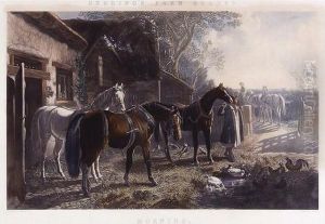 Horses At A Village Watering Trough, Winter