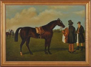 The Famed Racehorse, Sir Tatton Sykes, With His Owner And A Groomin A Loosebox