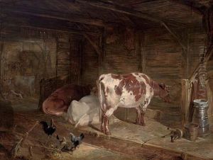 Cattle And Chickens In A Barn